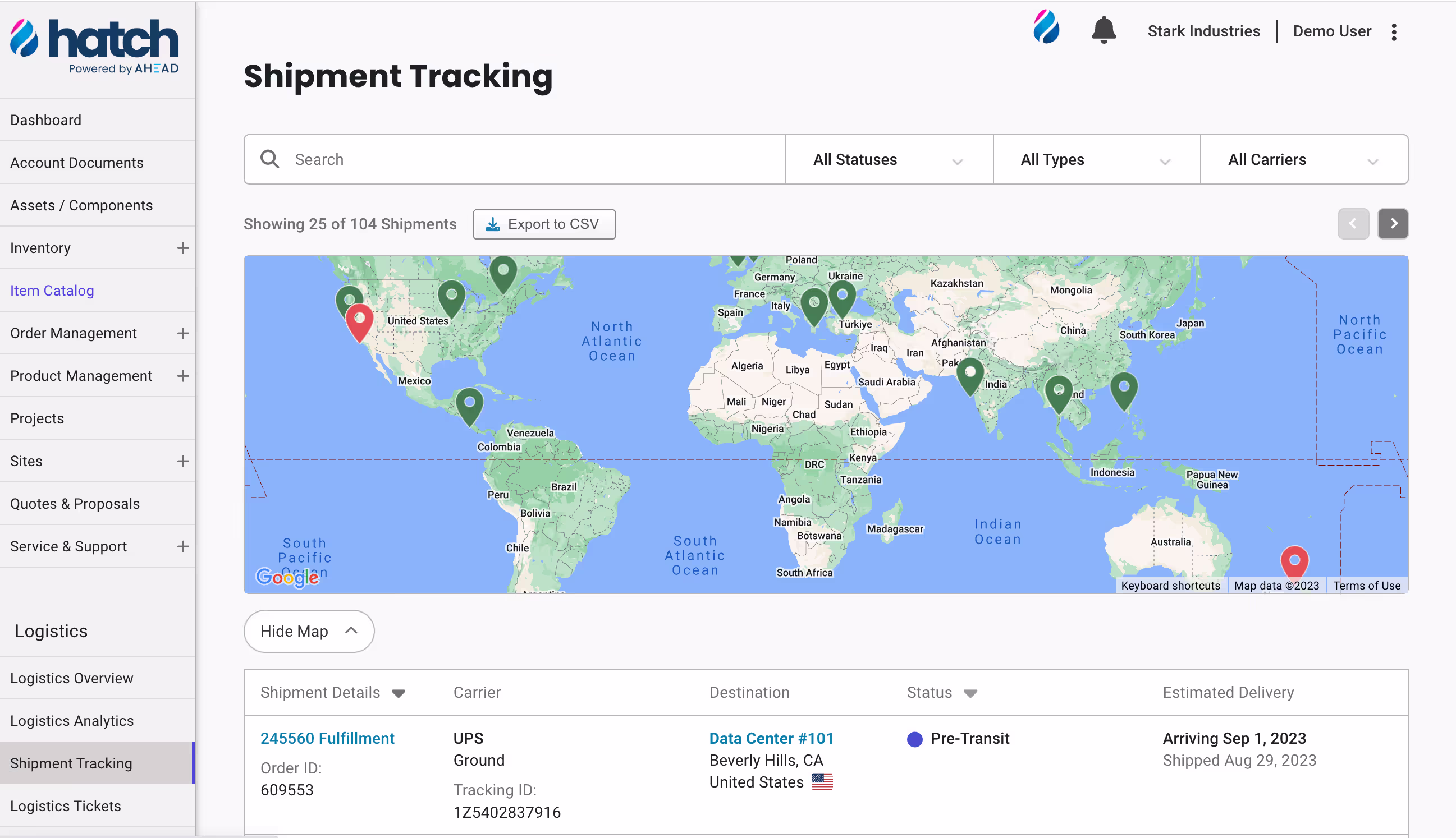 Track orders live as they progress through the stages of procurement, assembly, integration, fulfillment, and delivery.